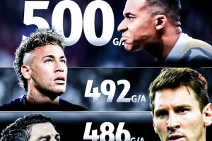 据统计,26岁姆巴佩职业生涯已直接参与500球,具体为313球+187助攻。RMC表示,同龄梅西、C罗、内马尔的这项数据均不如姆巴佩。