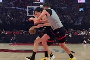 10月5日开拓者球迷嘉年华活动,杨瀚森秀脚步,单打克林根勾手命中