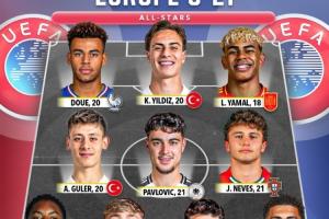 体育资讯10月13日讯 Score 90评选了欧洲U21年龄段的全明星阵容,亚马尔、若昂-内维斯领衔,其中西班牙三人,土耳其、法国、英格兰各两人,葡萄牙、德国各一人。