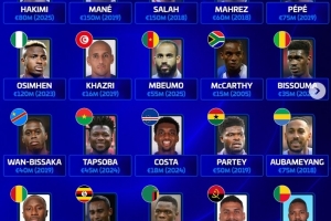 体育资讯10月14日讯 德国转会市场盘点了非洲各国球员历史身价纪录,萨拉赫和马内以1.5亿欧并列非洲历史身价最高球员。
