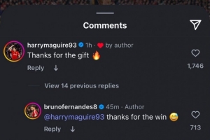 B费赛后社媒晒照庆祝胜利,马奎尔留言:“谢谢你的礼物。”