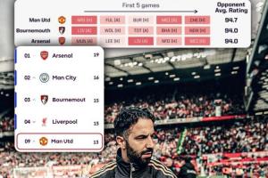 根据Opta的赛程难度评级,曼联是本赛季英超开局最艰难的球队……