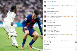 卡马文加在赛后通过社媒晒出自己同佩德里的对位照,并配文:“我的俱乐部!享受周日吧,马德里主义者们!”