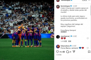 此役费尔明为巴萨破门,赛后他在社交媒体上写道:“巴萨球迷们!感谢你们在球场和世界各地的支持!”