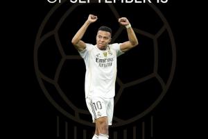 体育资讯11月01日讯 金球奖官方消息,姆巴佩当选金球奖9月份最佳球员。