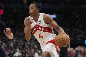 猛龙球员巴恩斯开局手感不错帮助球队取得领先,但他第二节手感下降频频打铁。