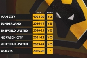 根据OPTA的数据统计,在英超历史上,10轮比赛仅拿两分或者更少积分的球队最终都难逃降级厄运。此前,1995-96赛季的曼城(2分)、2016-17赛季的桑德兰(2分)、2020-21赛季以及2023-24赛季的谢菲联(1分)、2021-22赛季的诺维奇(2分),这些球队无一例外最终降级。
