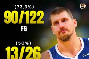 体育资讯11月13日讯 过去八场比赛,约基奇场均得到28.5分13.1篮板11.1助攻,命中率73.2%,三分命中率50%,罚球命中率85%。