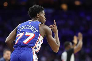 本场比赛,76人探花埃奇库姆状态回暖,在37分半的时间里,投篮15中6,三分球8中4,罚球2中2,拿到18分7篮板3助攻1抢断的数据。