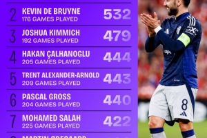 体育资讯11月19日讯 曼联中场B费在球场上展示出了非常出色的创造机会能力,根据Squawka的数据统计,2019-20赛季以来,B费是五大联赛创造机会最多的球员。