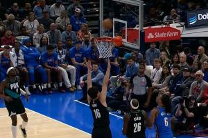 GIF-乔冲击杨瀚森的内线!!打成2+1!!