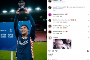 欧冠官方也在赛后将其评选为本场MVP,他也在赛后通过社媒晒出自己高举MVP奖杯的照片并配文:“真主至大!❤️在欧冠对利物浦打进2球!”