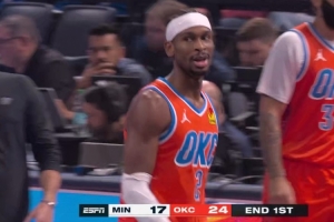 体育资讯11月27日讯 NBA杯小组赛,雷霆首节24-17领先森林狼。