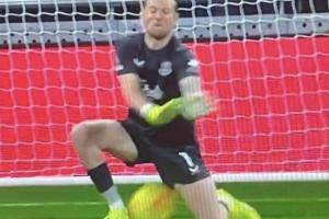 英超第13轮,埃弗顿主场1-4惨败纽卡斯尔联。比赛第25分钟,皮克福德扑救失误导致丢球。