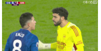 体育资讯12月01日讯英超第13轮,切尔西主场迎战阿森纳。79分钟,恩佐争抢后倒在地上,随后阿森纳发动反击,结果后场的拉亚与恩佐发生了争执。