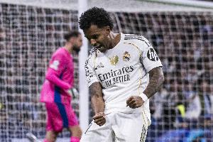 体育资讯12月11日讯 皇马1-2不敌曼城,罗德里戈打入球队唯一进球,这粒进球帮助他终结了个人的32场球荒。