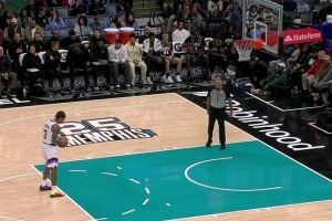 GIF-韦尔斯扑防基昂特·乔治三分,被吹罚一级恶意犯规