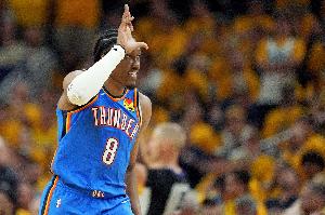 本场比赛,雷霆球员杰伦威表现一般,进攻端效率很低,在33分钟的时间里,投篮16中5,三分球5中2,罚球6中5,拿到17分7篮板4助攻4抢断的数据,正负值-18。