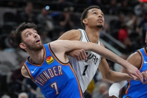 雷霆(24-2):亚历山大29分4板5助、杰伦·威廉姆斯17分7板4助4断、霍姆格伦17分7板、卡鲁索11分8板3助3断、哈尔滕施泰因10分8板1助、米切尔9分6板4助2断、华莱士7分3板1助2断、杰林·威廉姆斯6分3板、多特3分3板2助、维金斯1板。