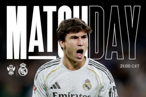 皇马官方社媒发布了为此役制作的海报,队内前锋贡萨洛·加西亚单人出镜。
