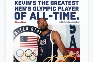 体育资讯2月23日讯 近日,勇士主帅科尔在接受采访时表示,杜兰特是奥运会有史以来最伟大的男子运动员。