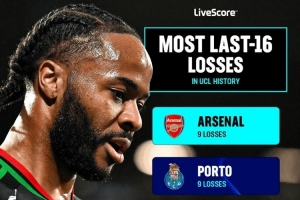 体育资讯3月5日讯 欧冠1/8决赛首回合,阿森纳客战埃因霍温的比赛即将打响。据统计,在欧冠历史中,阿森纳和波尔图是欧冠16强输球次数并列最多的球队。