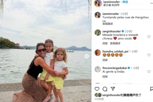 塞尔吉尼奥妻子更新社媒,晒出带女儿逛杭州的照片+附文:逛逛杭州街头。