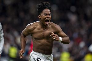 体育资讯4月2日讯 国王杯半决赛次回合,皇马主场对阵皇家社会,恩德里克破门。